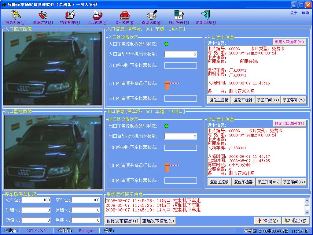 該系統采用刷卡+車牌識別模式(一卡一車)