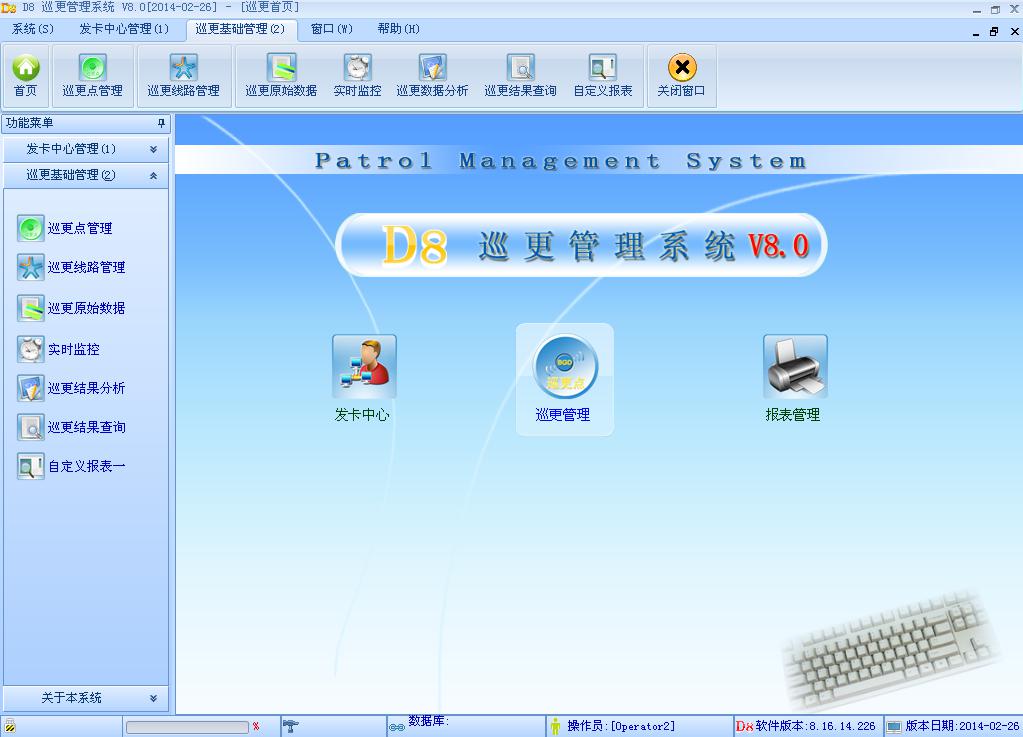 巡更系統是D8一卡通系統V8.0的一個功能模塊,可以和門禁模塊、會議簽到、消費系統等聯合起來使用,也可以單獨使用。如果聯合起來使用,在任何模塊中發一次用戶卡就可以了,所有模塊都可使用! D8巡更系統屬于在線巡更系統,設備數據實時上傳到服務器,開啟實時監控功能,可以實時刷新巡更路線路,當前巡更點巡更是否正常,一目了然!